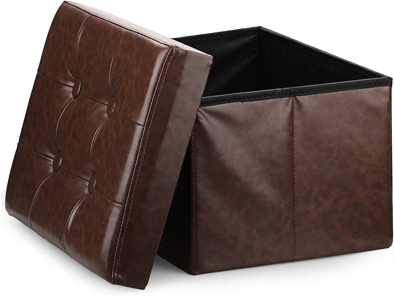 Ottoman brown leather storage can dress up or in common areas.